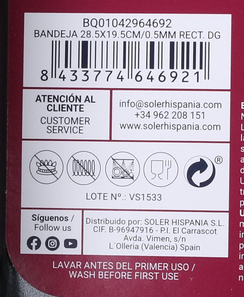 Descubre una forma más arriesgada de hornear con nuestra BANDEJA HORNO 28.5X19.5CM RECTANG. 0.5MM QUTTI. Con su tamaño y grosor perfectos, podrás preparar deliciosos platos al horno sin preocuparte por la distribución del calor. Lánzate a la aventura culinaria con nuestra bandeja de alta calidad. ¡No esperes más y consigue la tuya ahora mismo!